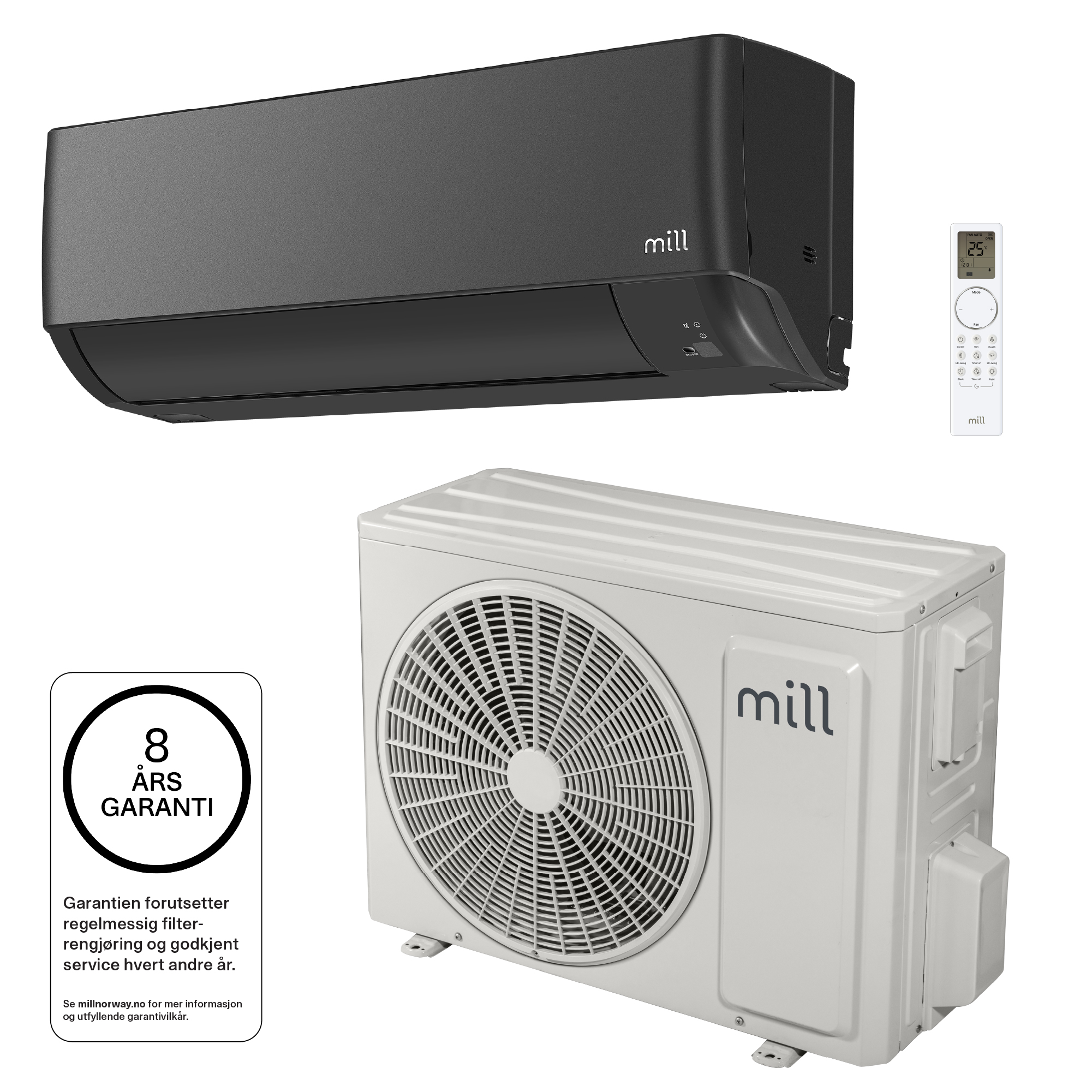 Mill-appen er den samme appen som styrer Mill WiFi varmeovner, som betyr at du kan få full kontroll over oppvarmingen i hjemmet ditt i en og samme app. Med denne smarte varmepumpen gir Mill deg den ultimate skandinaviske hjemmekomforten med høy varmeeffektivitet og komfortabel kjøling tilpasset dine personlige behov. Varmepumpen er utviklet for nordiske forhold, og er effektiv også på spesielt kalde dager (fabrikktestet ned til -30°C). Varmepumpen har en lekker dempet sort farge, som passer ypperlig i hjem og hytter med sorte detaljer i interiøret. Det kompakte designet og den matte overflaten gjør at den glir pent inn i hjemmet. Denne modellen anbefales for middels store åpne romløsninger opp til 100 m².
